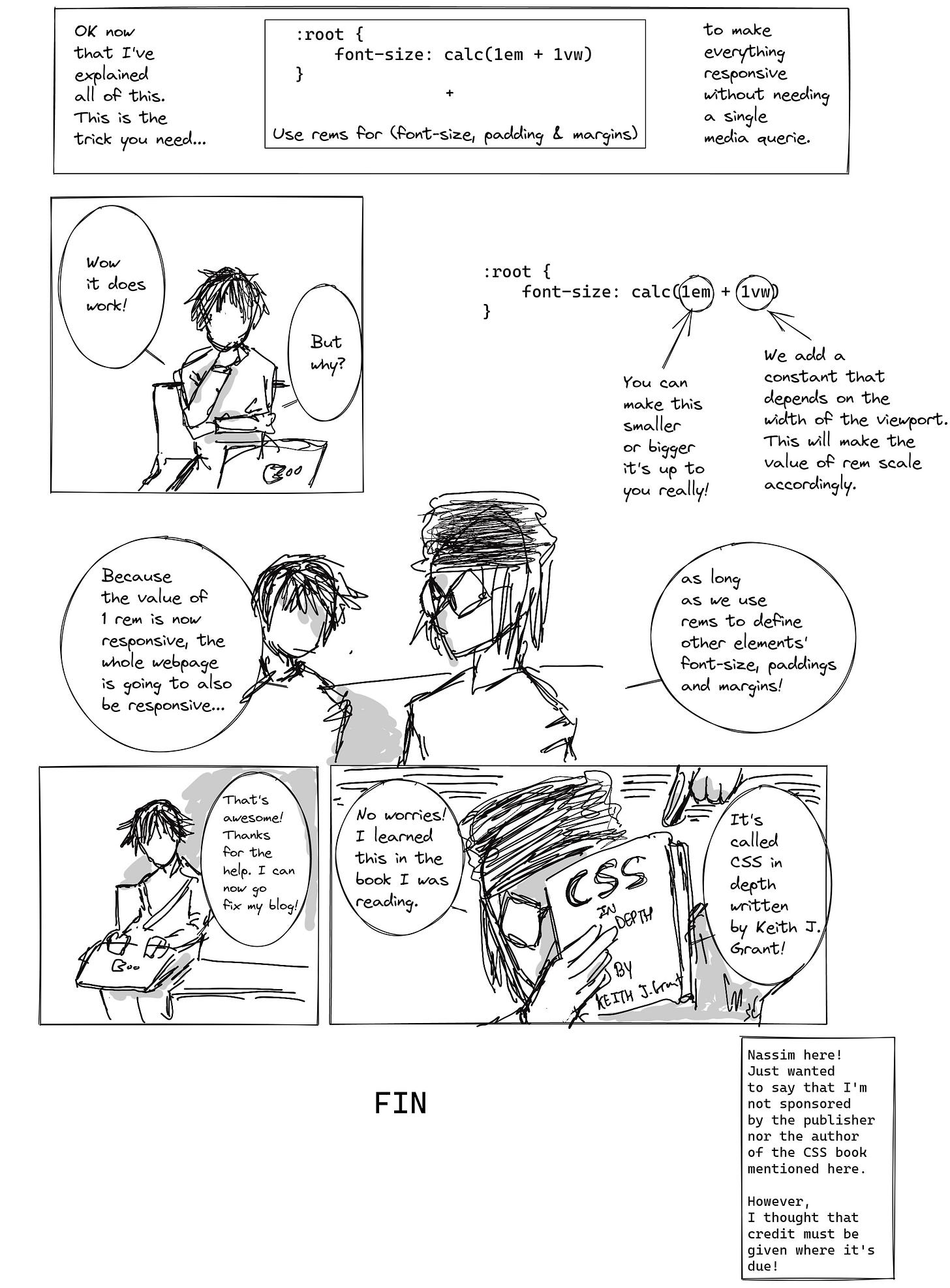 How to Use :root, em and rem to Make Your Website ResponsiveNassimDec 06, 2022ShareThanks for reading! You can subscribe for free to be notified when I post new comics about software engineering and programming.Subscribe